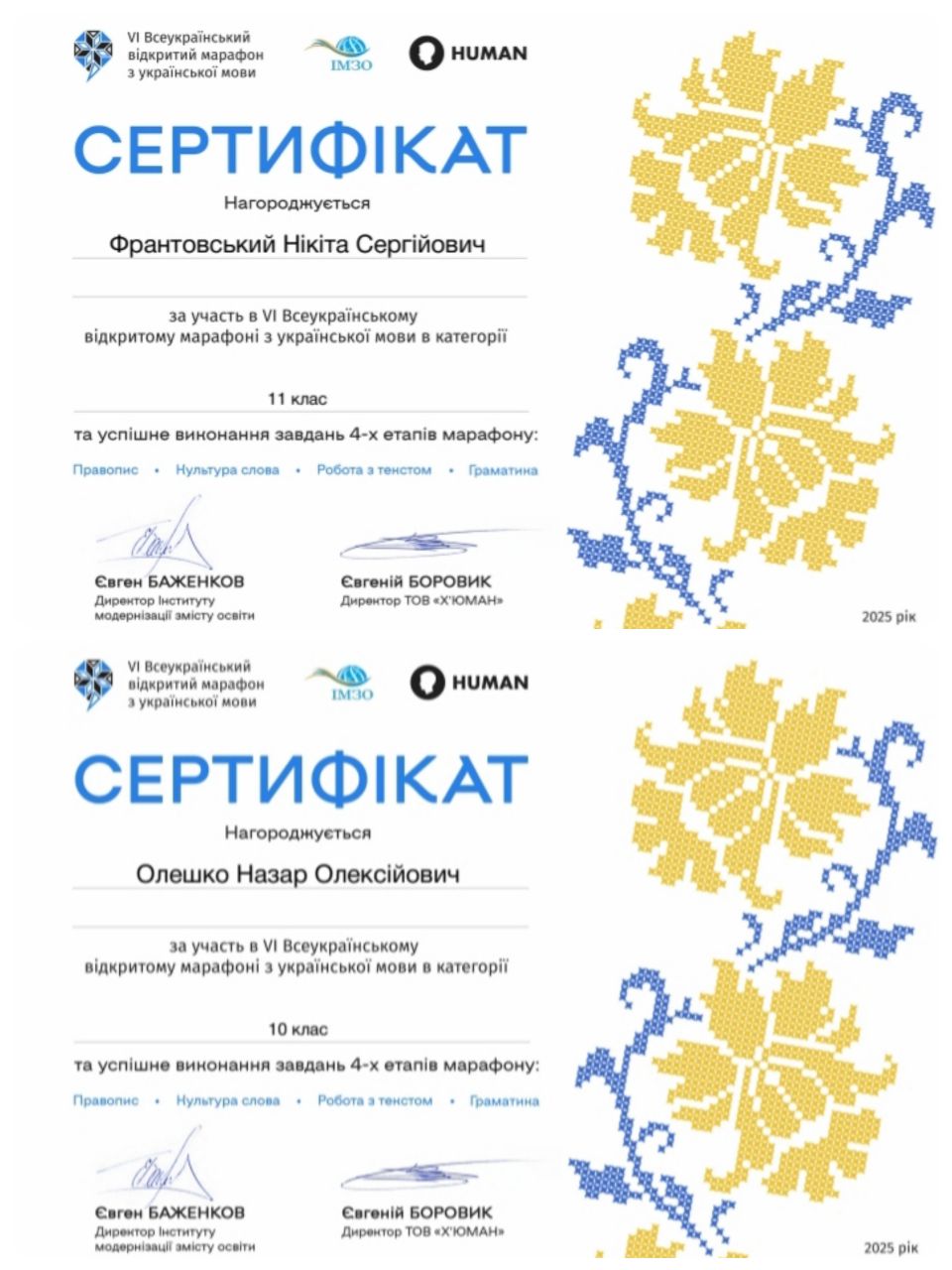 Вітаю учнів 10 та 11 класу. Так тримати!